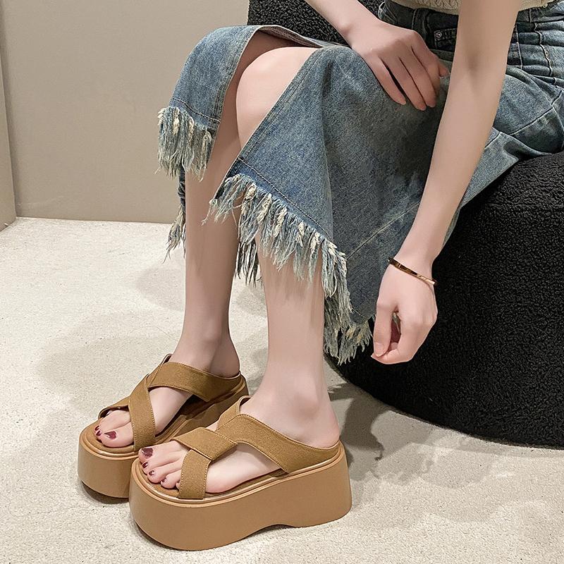 Модные летние женские тапочки, пляжные шлепанцы, женская обувь для вечеринок, босоножки на танкетке, женские тапочки на высокой платформе 8 см