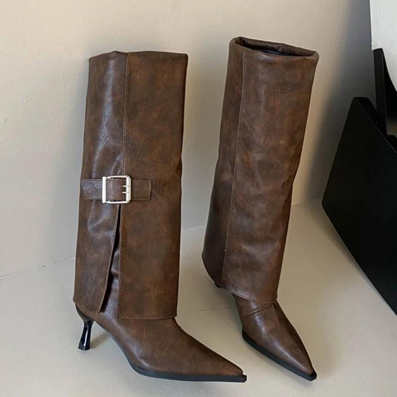 Модные женские длинные сапоги на высоком каблуке, модные туфли с острым носком, элегантные дизайнерские сапоги до колена, для вечеринки, зима 2025, новые туфли-лодочки, zapatillas