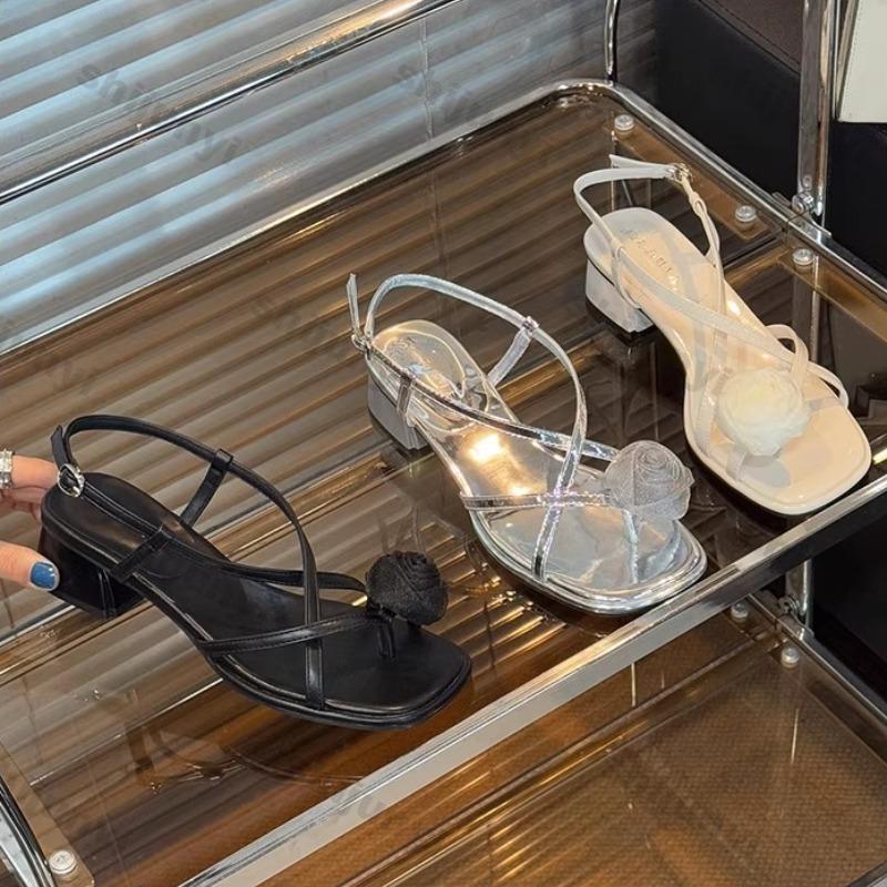 Модные женские туфли на высоком каблуке 2025 Лето Открытый мыс-клип Массивный каблук Модный ремешок с пряжкой-камелией Удобные босоножки для увеличения роста — купить товар онлайн с бесплатной доставкой по всему миру!