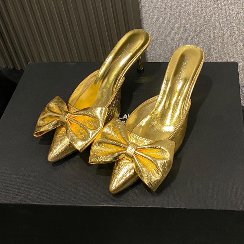 Модные женские шлепанцы с бантом и острым носком, туфли-мюли на высоком каблуке-шпильке, сексуальные туфли-лодочки, летние босоножки-слингбэки 2025 Mujer Zapatillas