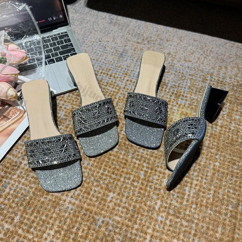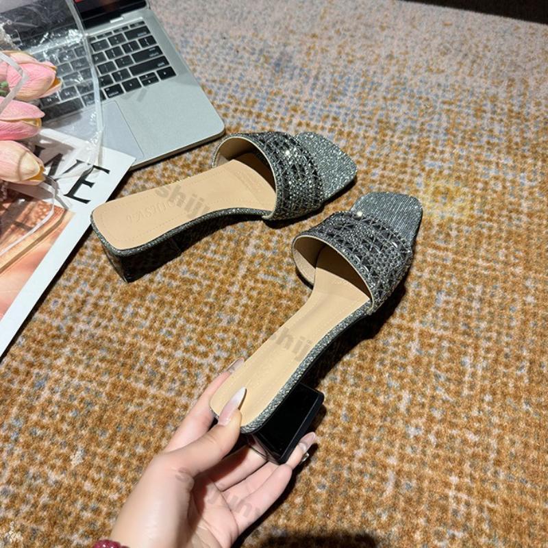 Модная женская обувь 2025 Новые летние модные нескользящие шлепанцы со стразами Уличные с увеличением высоты Платье Стиль Женские сандалии на среднем каблуке