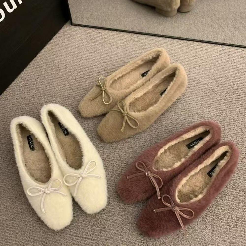 Модная обувь Женские балетки Низкий каблук Повседневные женские кроссовки Слипоны Лоферы Мех Круглый носок С мелким вырезом Осеннее платье Лодочки Слипоны Зима