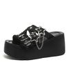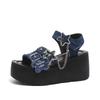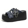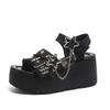 Fashion 9CM Punk Gothic Platform Canvas Shoes Open Toe Buckle Strappy Summer Sexy Rivets Thick Heels Footwear Gladiator Sandals Women