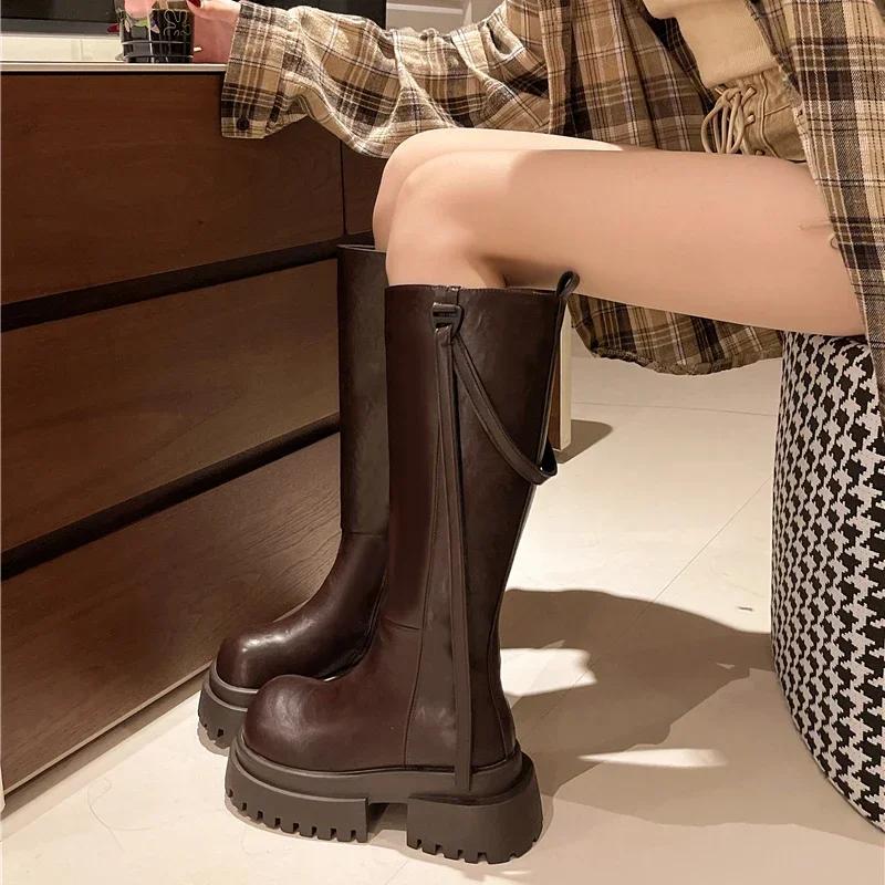 Модные 7 см Новые Уличный Стиль Женские Короткие Плюшевые Панк Платформа Современные Сапоги Модные Ботфорты До Колена 2025 Осень Зима Женская Обувь