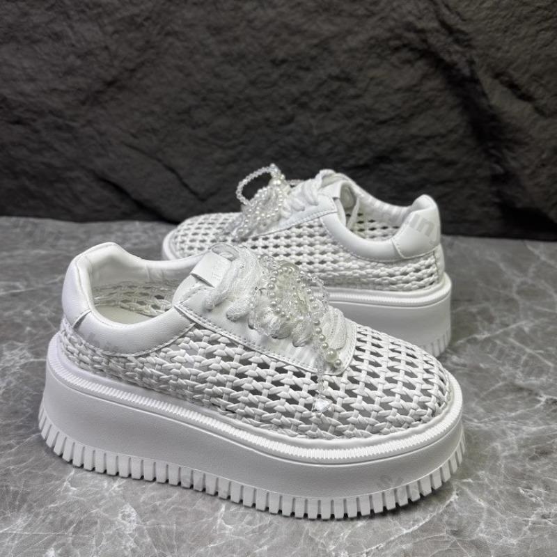 Модная женская обувь 2025 Лето Новые увеличивающие рост сетчатые дышащие туфли на платформе Легкие на шнуровке с бантом Повседневная обувь
