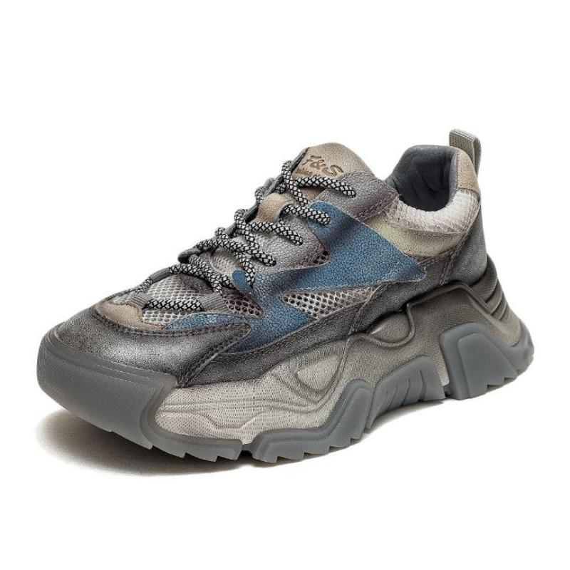 Модные 5 см кроссовки на массивной подошве из натуральной кожи с сеткой, ботильоны, осенние кроссовки, женские удобные весенне-летние ботильоны смешанных цветов, обувь