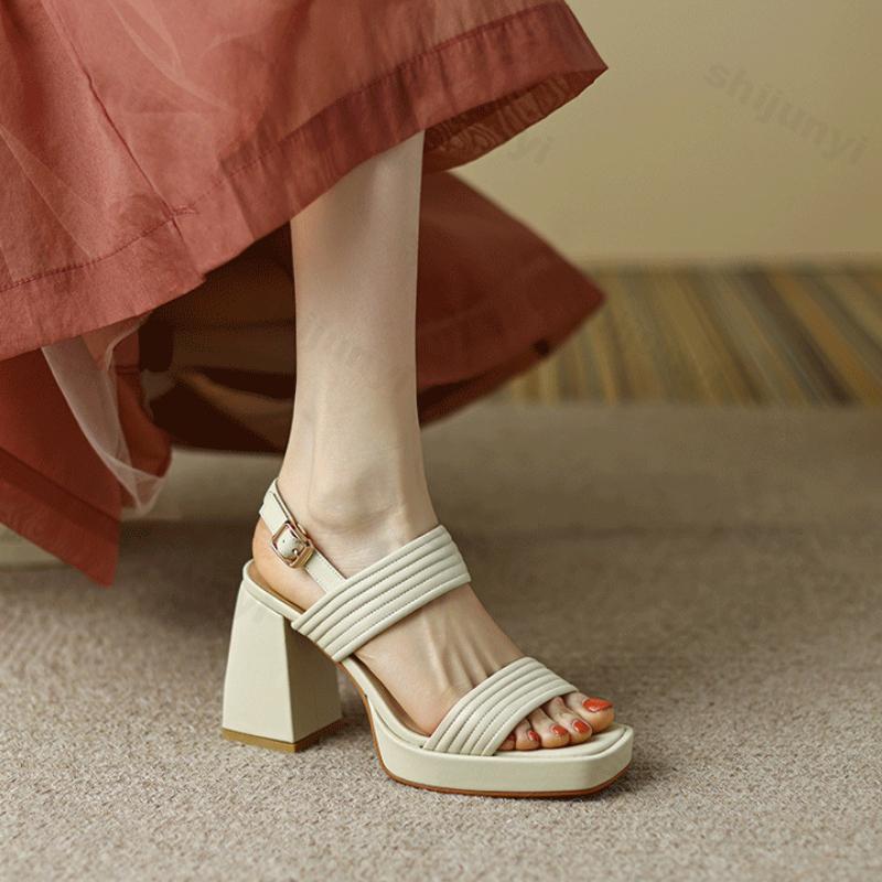 Модные Женские Модные Сандалии на Пряжке с Ремешком 2025 Удобные Летние Римские Сандалии на Высоком Каблуке Женские С Открытым Носком Квадратный Каблук Толстый Каблук Обувь