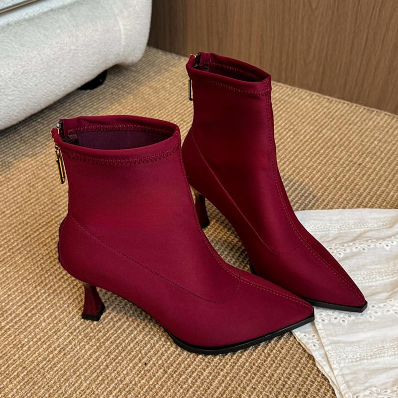 Модные женские ботильоны с острым носом на высоком каблуке, сексуальные модные туфли, дизайнерские роскошные лодочки, 2025 Зимние, для платья, для вечеринки, Челси, Botas Mujer