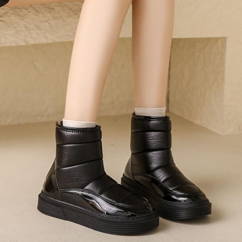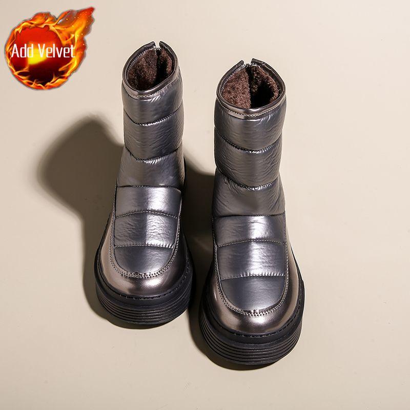 Модная водонепроницаемая женская обувь с круглым носком, зимние массивные женские сноубутсы, шикарная и элегантная мода 2025, плюшевые теплые ботильоны по акции
