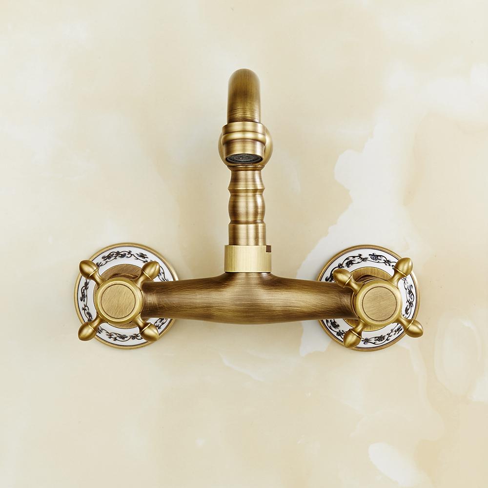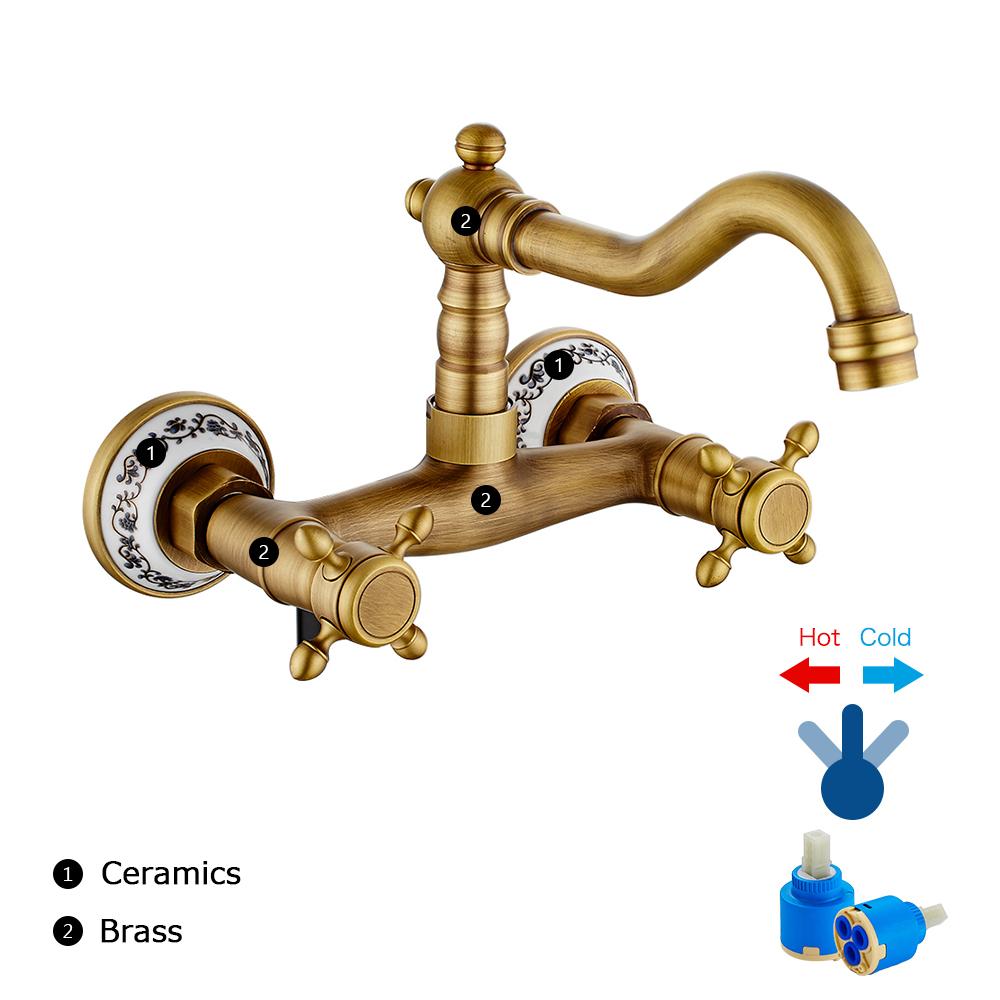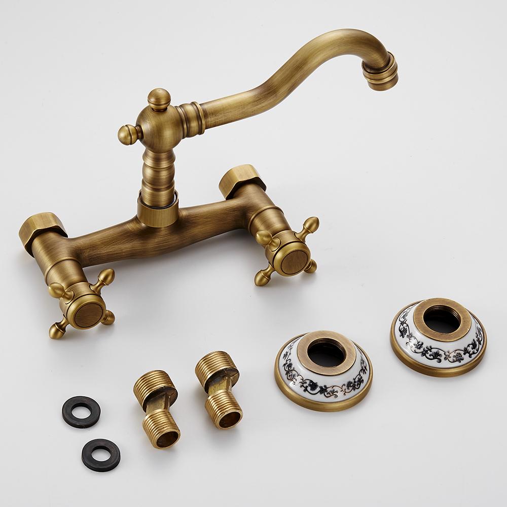 Смеситель с двумя отверстиями и двумя рычагами, поворотный кран для горячей / холодной воды, краны для раковины в стиле ретро, латунные краны для ванной комнаты и кухни