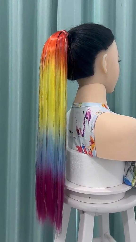 Синтетический хвост-накладка для волос с 9 прядями, блестящая мишура радужной расцветки, резинки для вечеринки, косплея — купить товар онлайн с бесплатной доставкой по всему миру!
