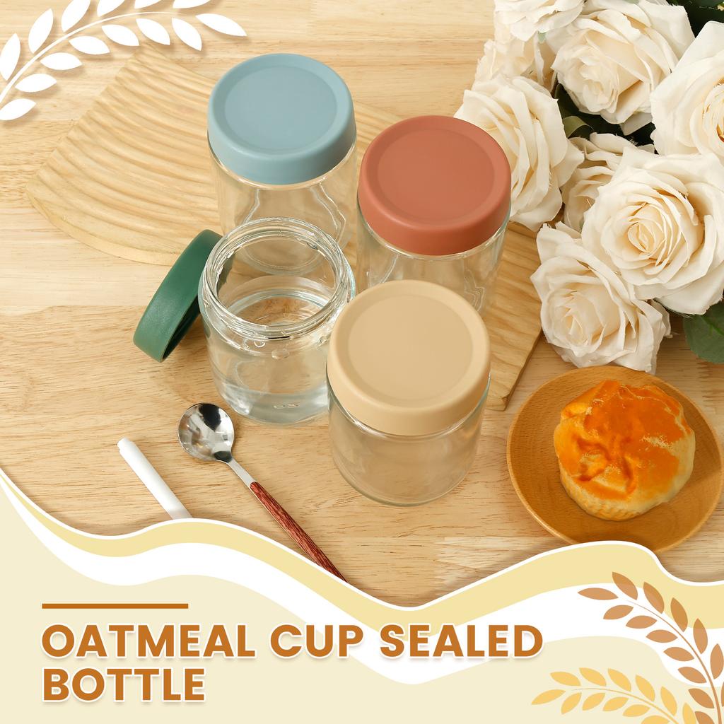 4Pcs 500ml Clear Glass jars with Airtight Lids Oats Containers Stackable Wide Mouth Oatmeal Containers for Yogurt Pudding Jam