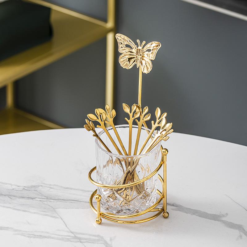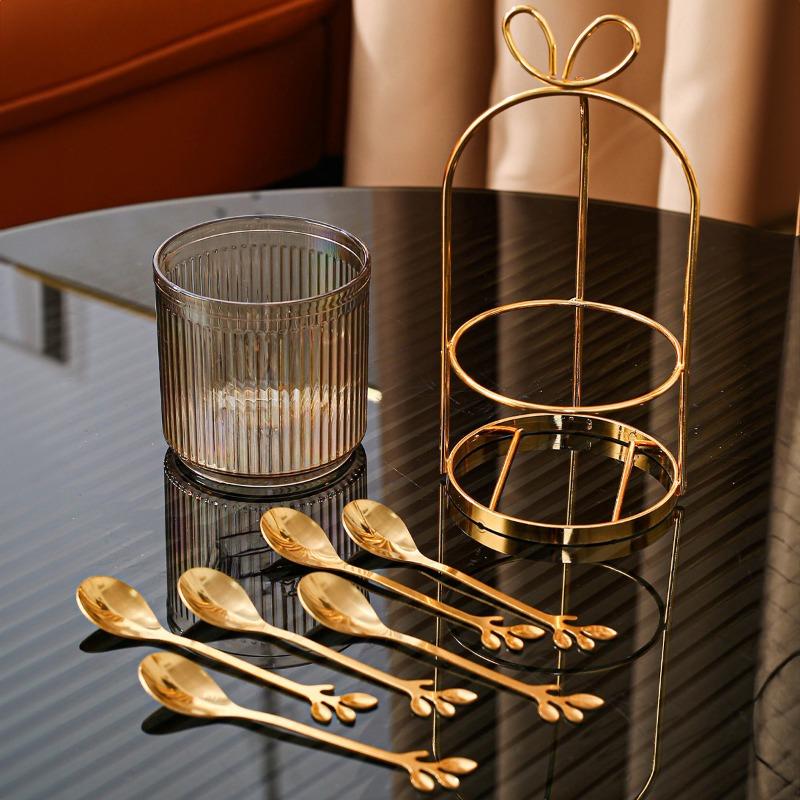 Стеклянная чашка Набор кофейных ложек из нержавеющей стали Банка для хранения Железная подставка Штуки Кухонный органайзер Дом Ресторан