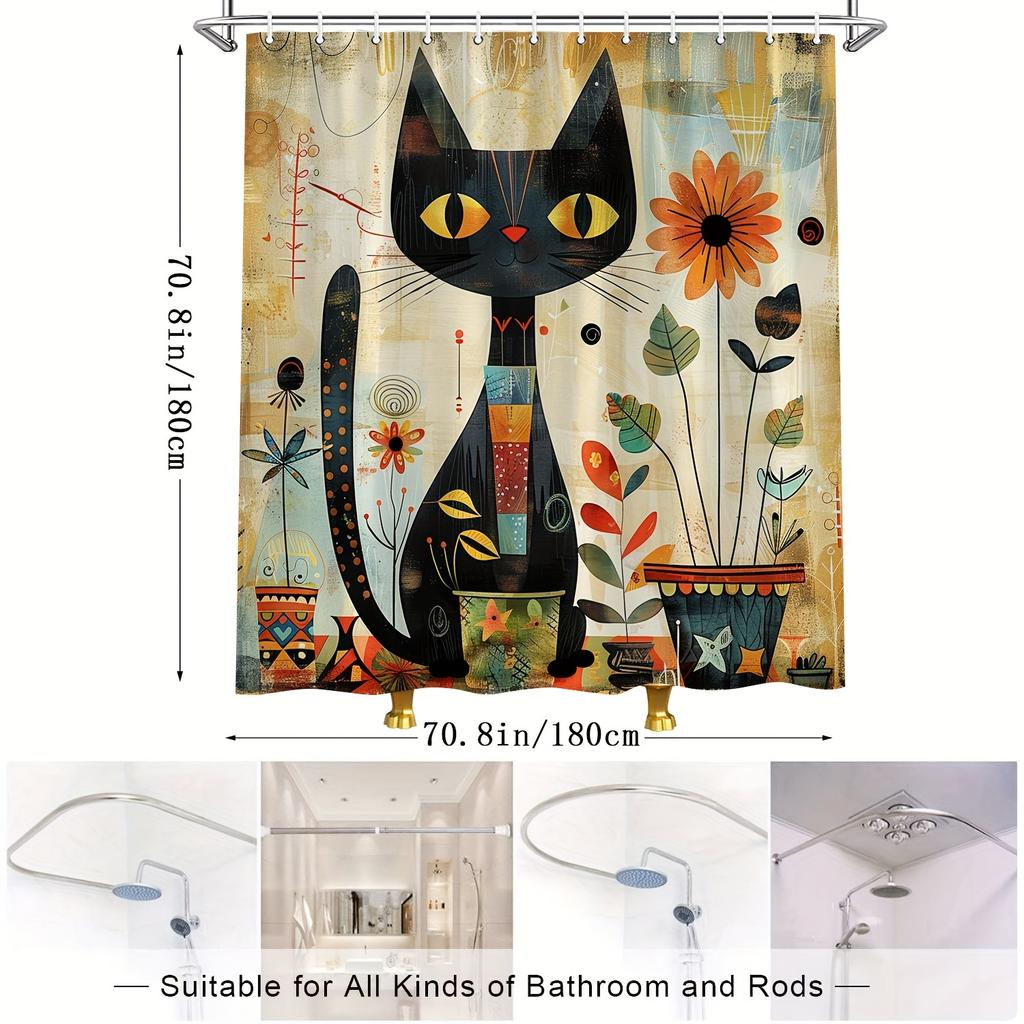 Черная кошка и подсолнух занавеска для душа ретро акварель мультяшный кот дизайн полиэстер ткань украшение для ванной комнаты с крючком