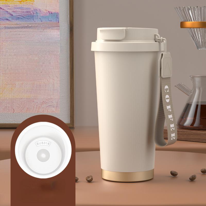Простая и вместительная термокружка из нержавеющей стали 316, двухслойная керамическая кофейная кружка для питья, автомобильная портативная кружка для воды с соломинкой