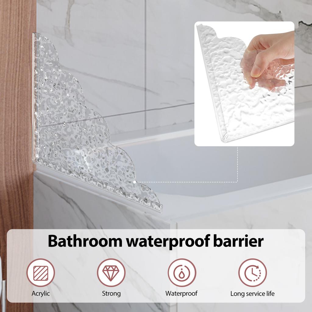 2 шт. самоклеящиеся акриловые брызговики для душа с силиконовым основанием, водонепроницаемые прозрачные бортики для ванны, легко устанавливаются