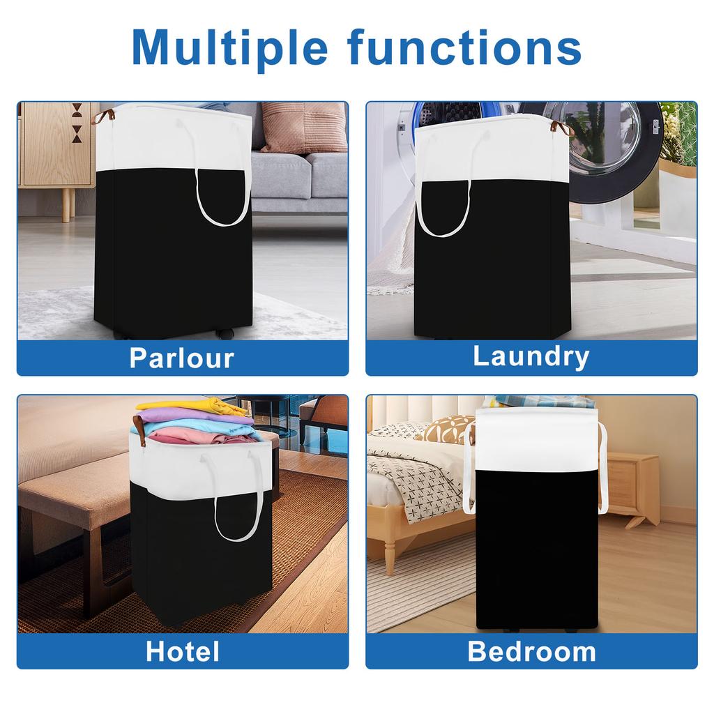 Корзина для белья на колесиках Складная корзина для белья Большой вместимости Портативная корзина для белья на колесиках для дома, общежития, прачечной