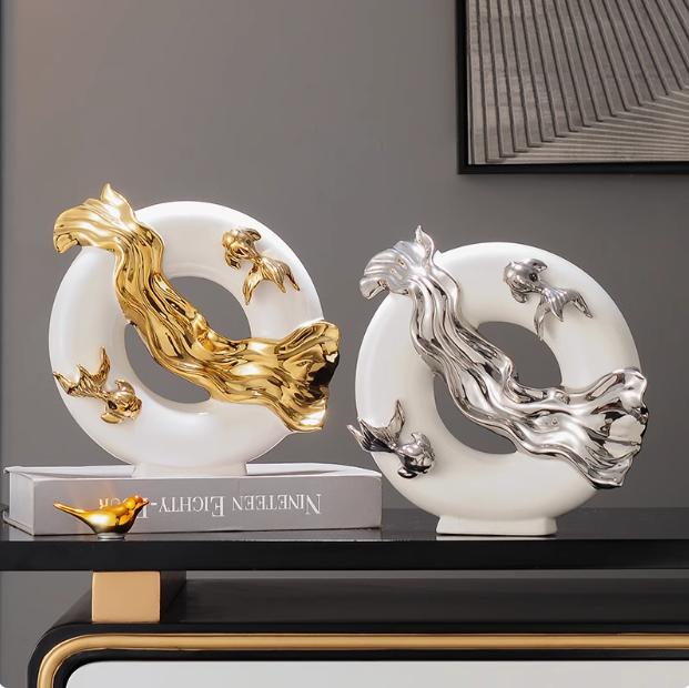 Китайские карпы кои привлекают богатство Керамические аксессуары Офис Кафе Стол Скульптура Ремесла Дом Гостиная Книжная полка Фигурки Декор