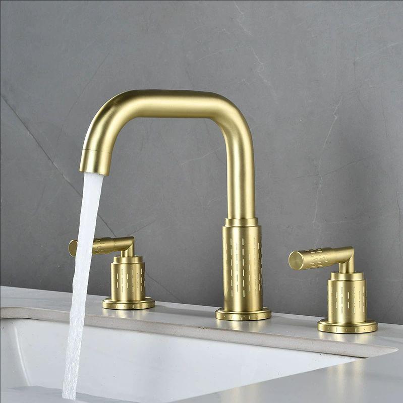 Gray Basin Faucets Brass Antique Bathroom Faucet Brushed Gold Sink Faucets 3 Hole Hot And Cold Black Waterfall Faucet Water Tap