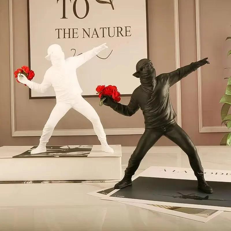 Aesthetic Throw Flower Boy Figure Resin Banksy Statues Figurines Art Sculpture Ornament Living Room Decoration Desk Accessories — купить товар онлайн с бесплатной доставкой по всему миру!