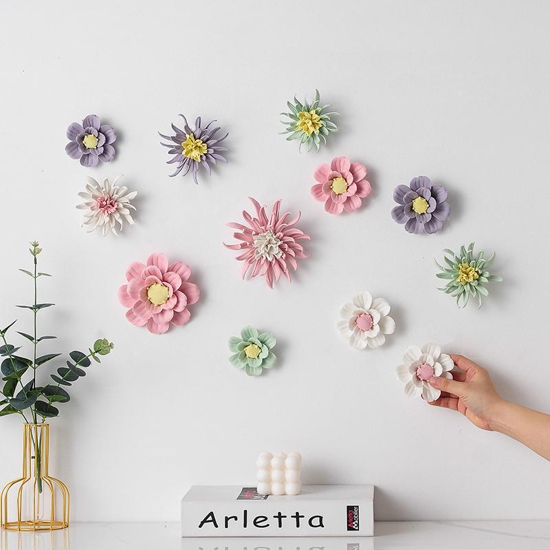 Креативная керамическая настенная фреска с цветами, украшение для дома, диван, ТВ-фон, настенные подвесные поделки, магазин, отель, декор для стены на веранде, наклейка