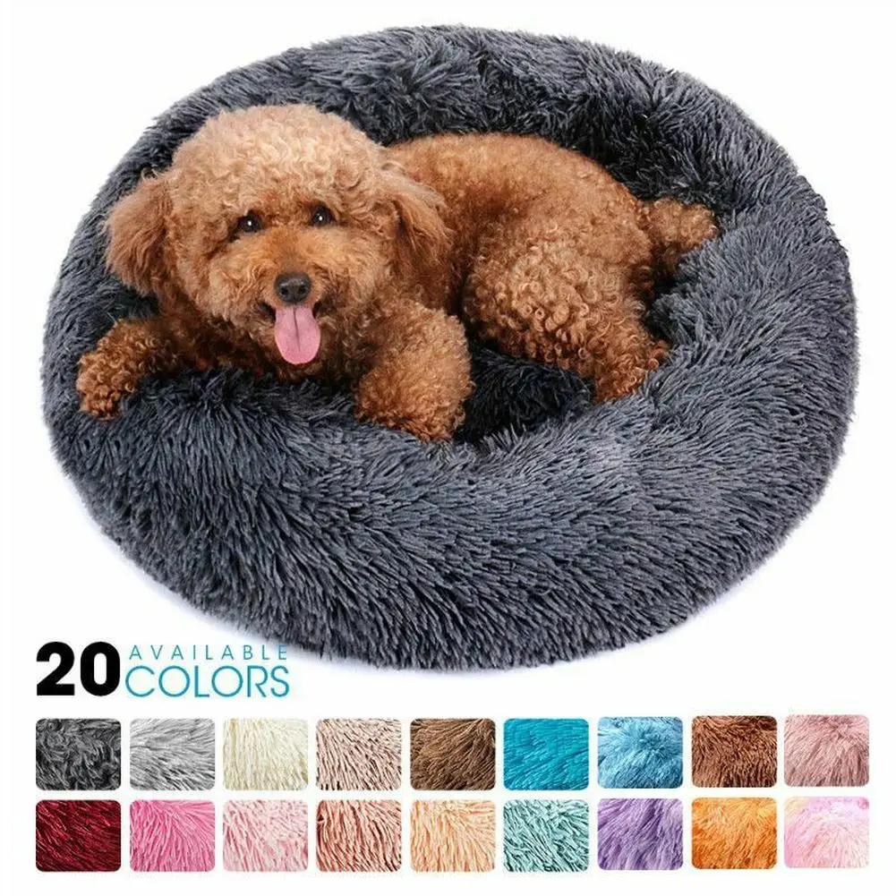 Круглая кровать для собаки, длинная плюшевая конура для домашних животных, моющийся кошачий домик, мягкие хлопковые коврики, диван для маленьких и больших собак, корзина для собак чихуахуа, кровать для домашних животных