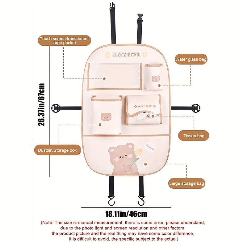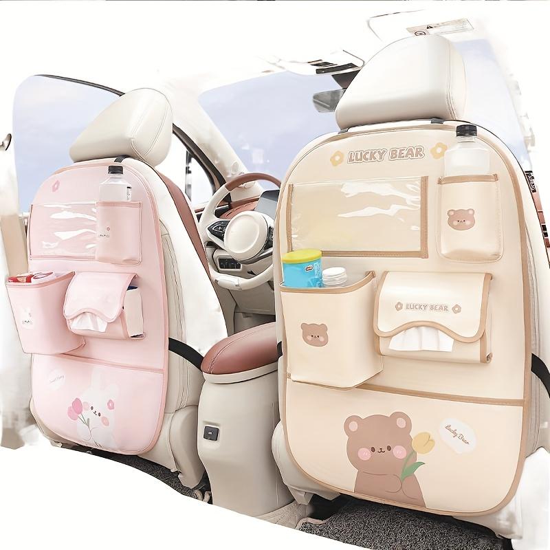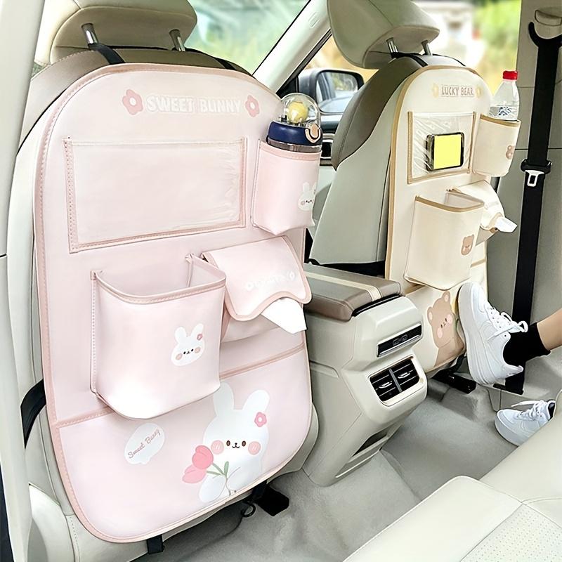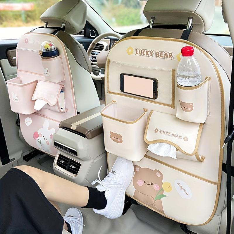 1 шт. Органайзер на спинку сиденья автомобиля из ПУ кожи с милым мультяшным рисунком, многофункциональная автомобильная урна для мусора, защита от пинков для салона автомобиля
