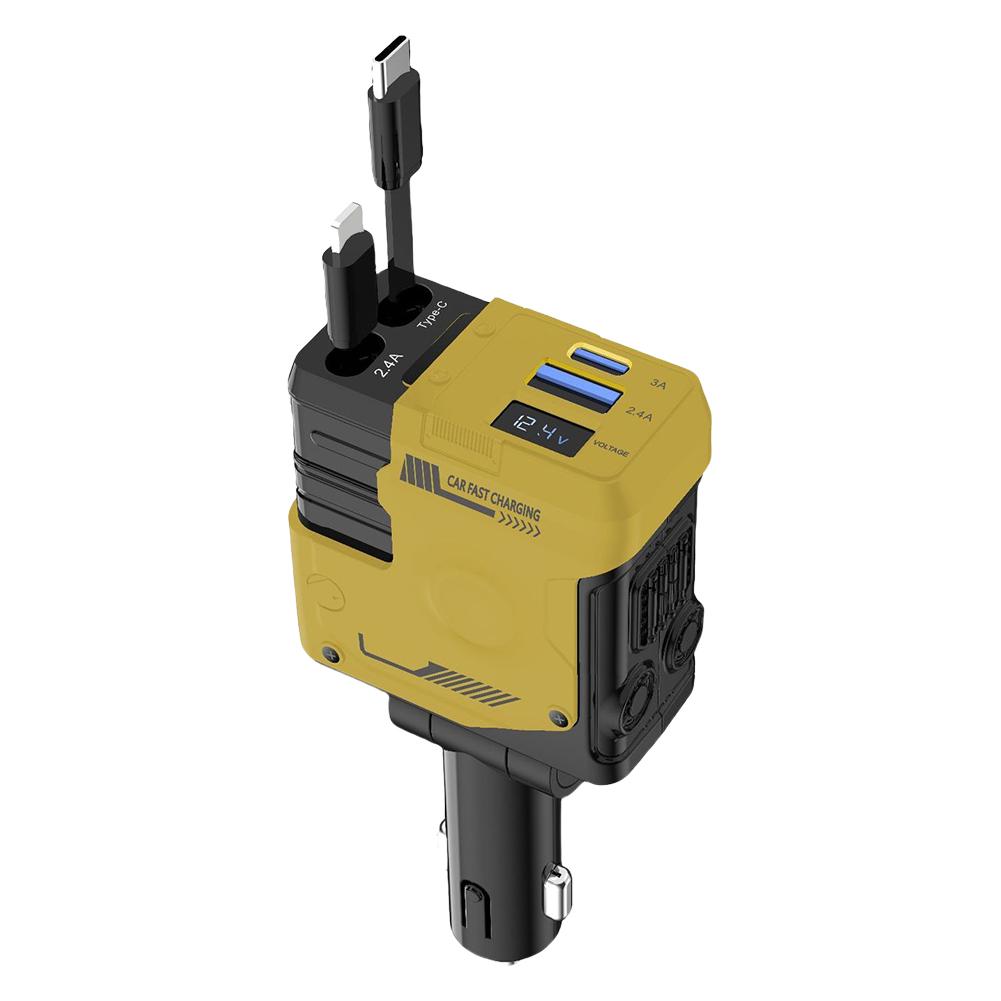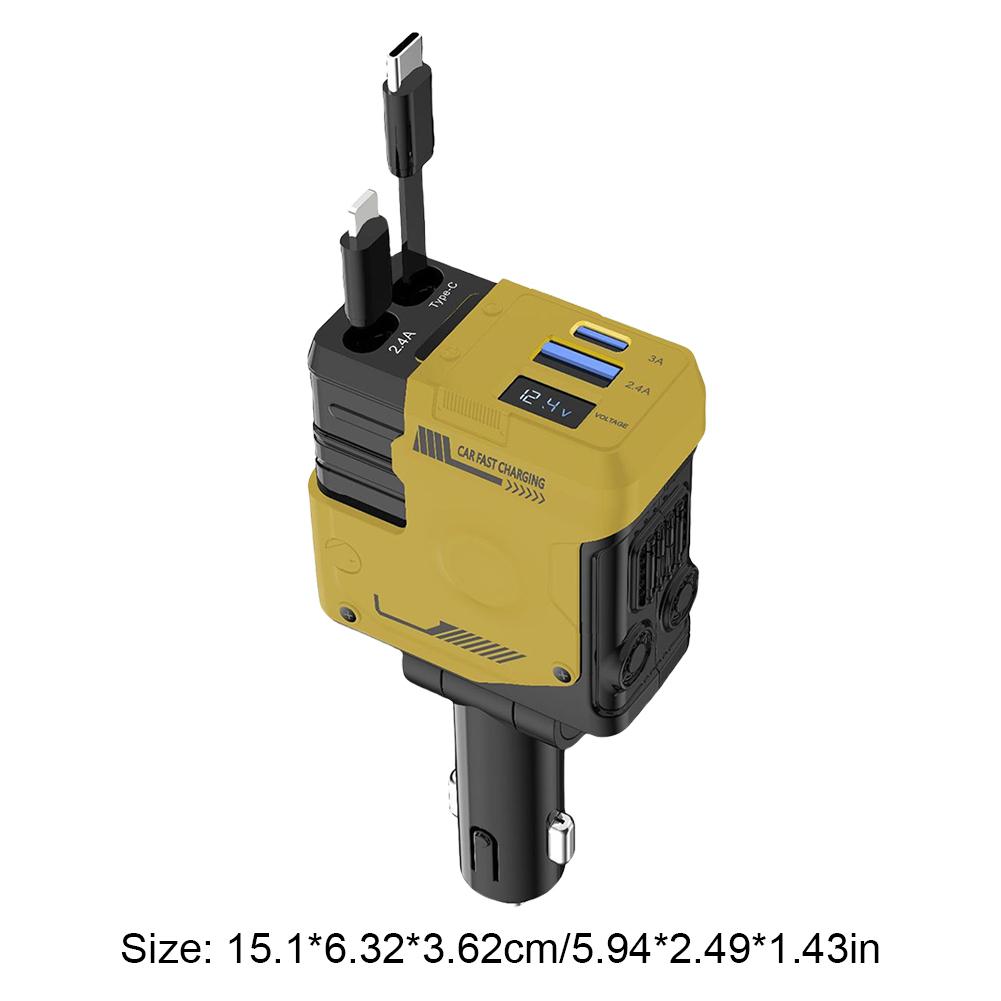 Адаптер прикуривателя для автомобиля 120 Вт USB Type C 4 в 1 Выдвижной кабель для быстрой зарядки Цифровой вольтметр для iPhone Xiaomi Huawei