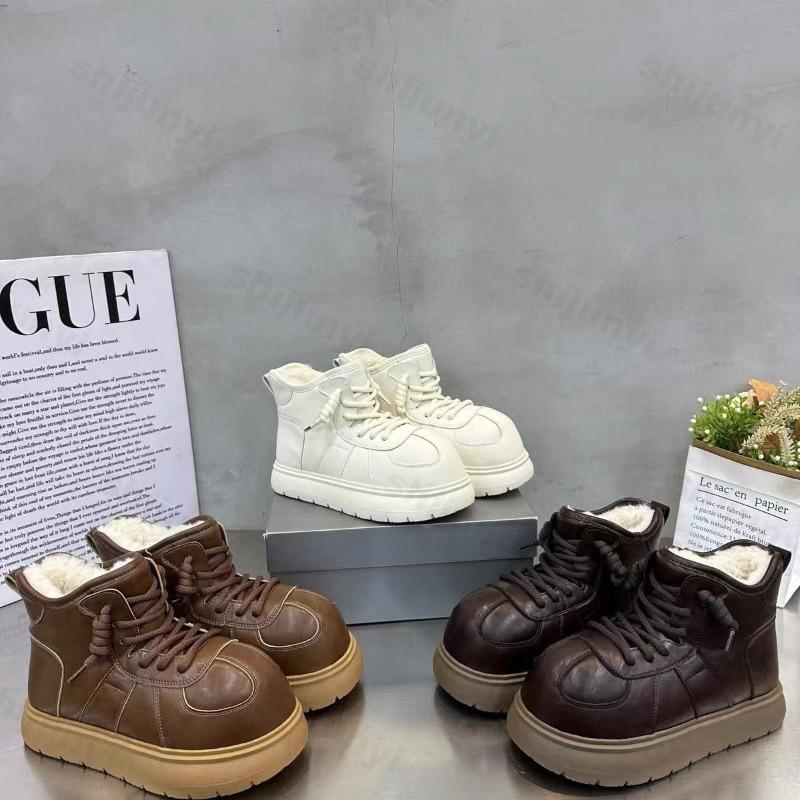 Модные ботинки на платформе женские 2025 зима новая мода увеличение роста повседневные хлопковые туфли уличные теплые удобные на шнуровке короткие ботинки