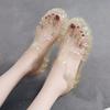 Модные летние новые модные дышащие сандалии баотоу для женщин на низкой подошве с прозрачными кристальными желейными туфлями летняя женская обувь