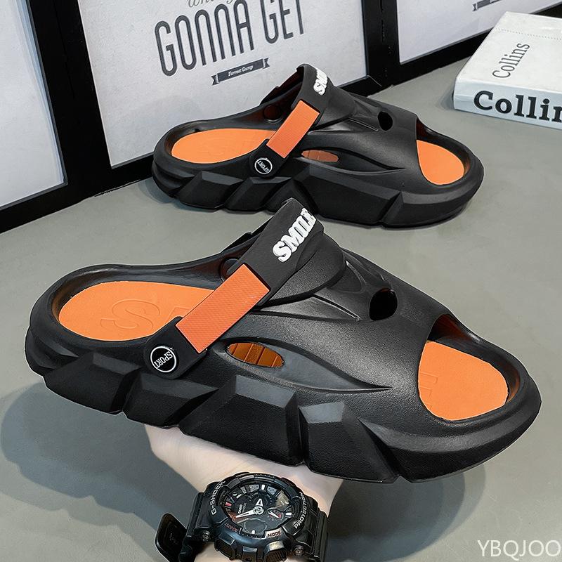 Модные трендовые мужские шлепанцы из ЭВА для улицы Новые летние спортивные пляжные противоскользящие с толстой подошвой контрастного цвета повседневные мужские сандалии
