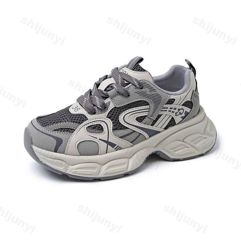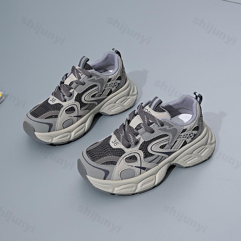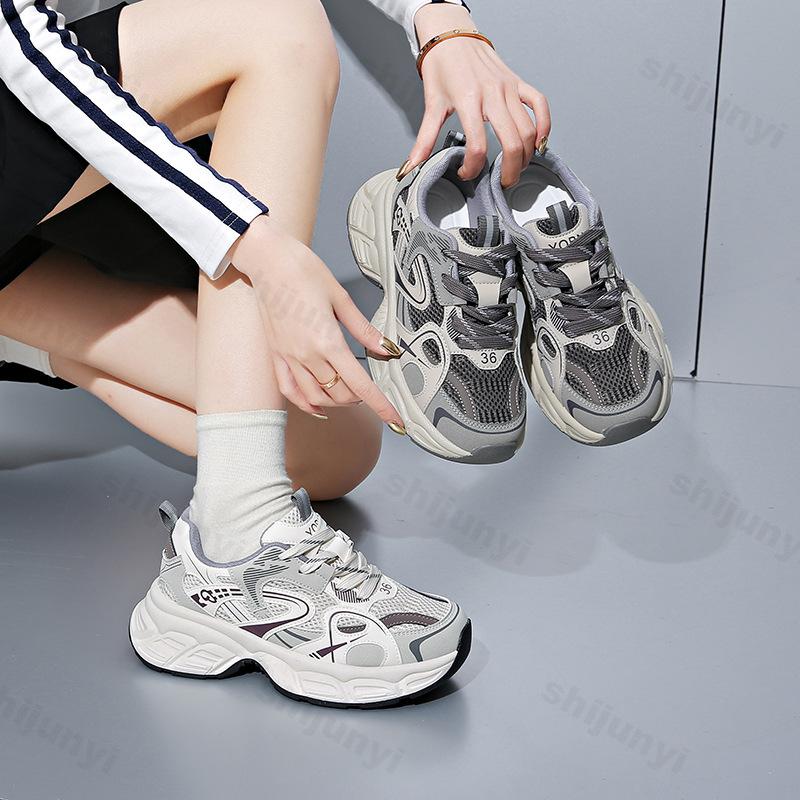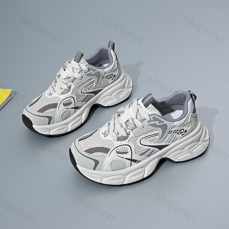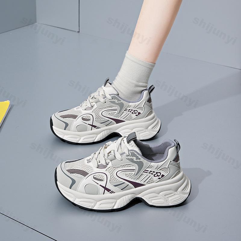 Мода 2025 Весна Новая Женская Обувь Нескользящая Повседневная Обувь Дышащая Сетка Удобные Кроссовки На Шнурках Увеличение Роста Вулканизированная Обувь