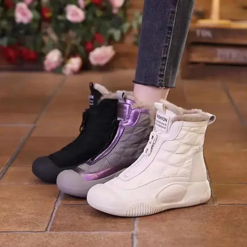 Модные Ретро Водонепроницаемые Снежные Ботинки 2025 Зима Новые Мягкая Подошва Вулканизированные Хлопковые Ботинки с Плюшевой Утепленной Подкладкой Высокие Женские Ботинки Traf