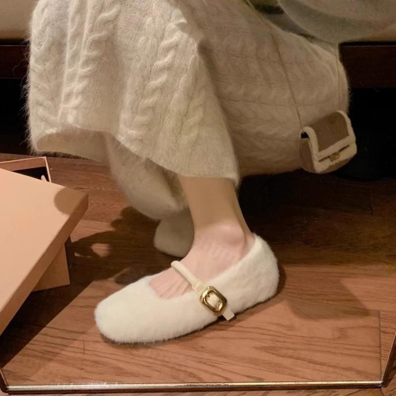 Модные женские балетки плюшевые осенние новые винтажные с ремешком и пряжкой Мэри Джейн легкие удобные нескользящие модные туфли