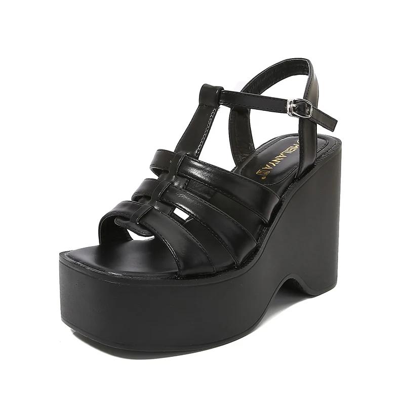 Модные 11 см черные сандалии на высокой платформе и высоком каблуке, женские сандалии на массивном каблуке с ремешком и пряжкой, панк-гладиаторская обувь, летние клинья, туфли-блоки