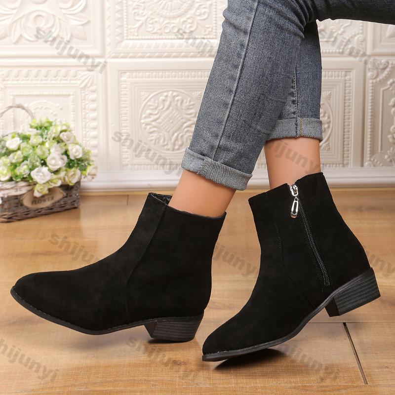 Мода Женская Мода Ботинки на Толстом Каблуке Осень Зима Новые Круглый Носок Толстая Подошва Нескользящие Короткие Ботинки Размер Молния Замшевые Короткие Ботильоны