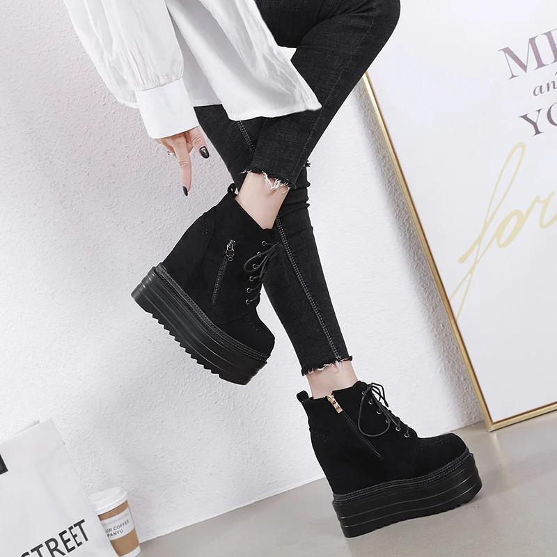 Модные женские трендовые ботинки на платформе 14 см, модный дизайн с боковой молнией и ремешком с пряжкой, стильные ботинки до середины икры на танкетке, увеличивающие рост — купить товар онлайн с бесплатной доставкой по всему миру!