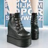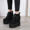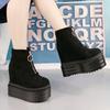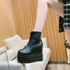 Модные женские трендовые ботинки на платформе 14 см, модный дизайн с боковой молнией и ремешком с пряжкой, стильные ботинки до середины икры на танкетке, увеличивающие рост