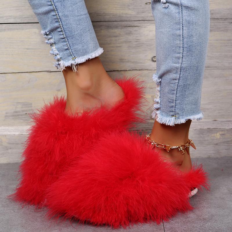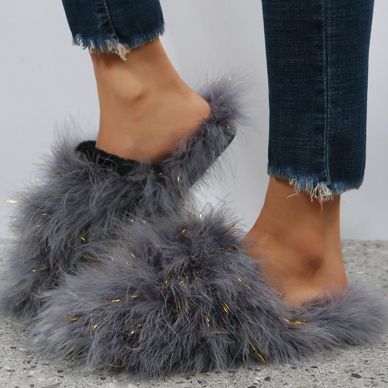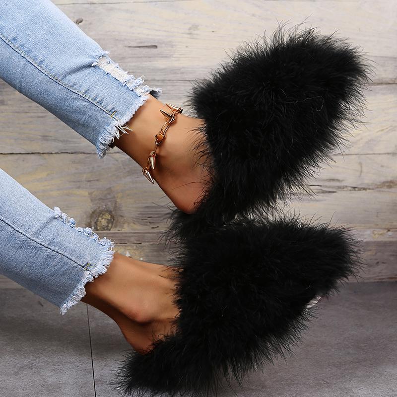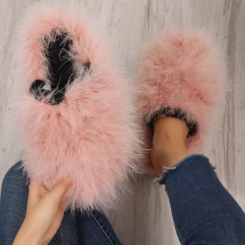 Модные женские роскошные меховые тапочки 2025 Новые легкие плоские полутапочки Уличная обувь Баотоу Женские модные тапочки-слайды с круглым носком и мехом Женские