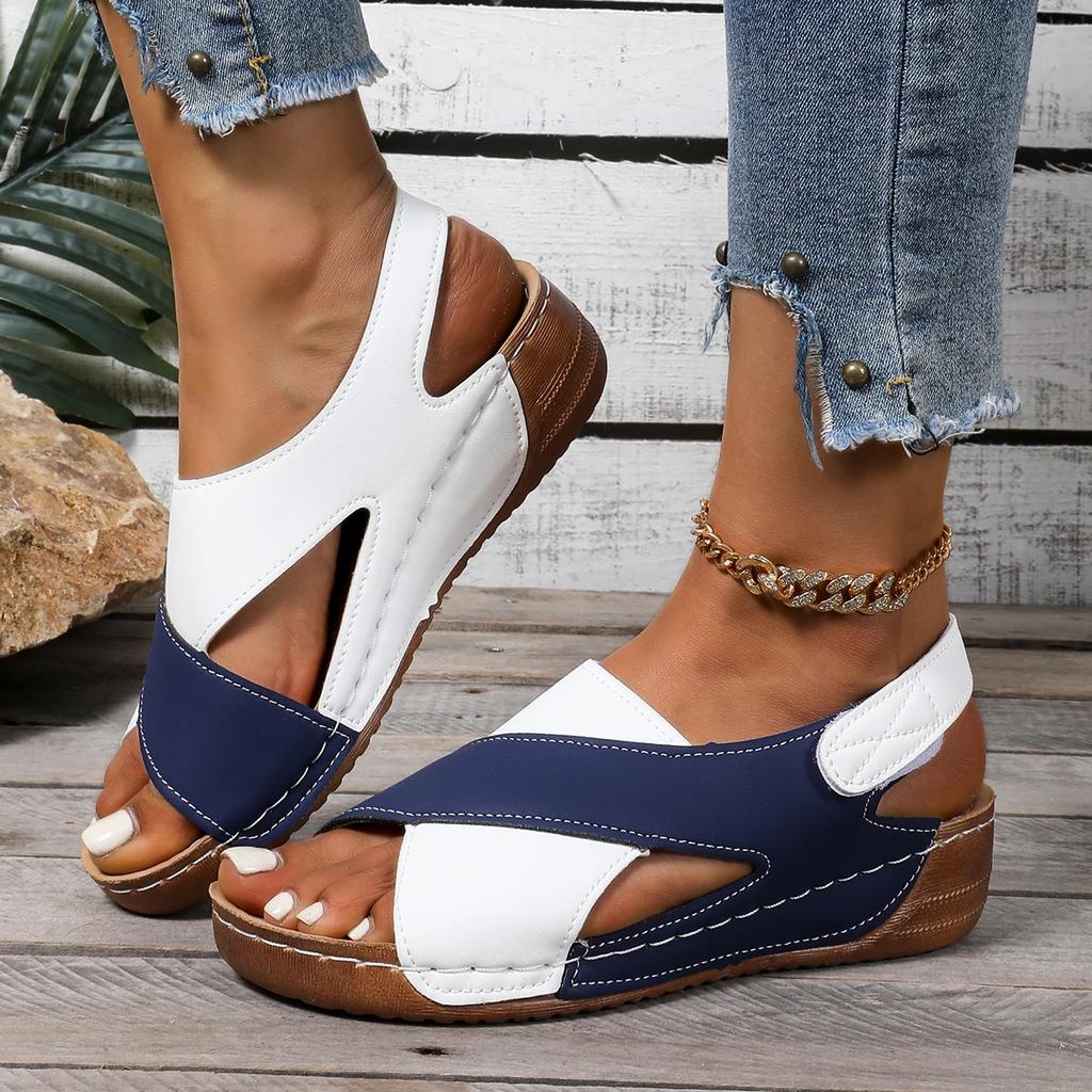 Модные женские сандалии-клинья смешанных цветов 2025 новинка Удобные Нескользящие Пляжные туфли Женские ПУ кожа Платформа Римские сандалии Sandalias Mujer