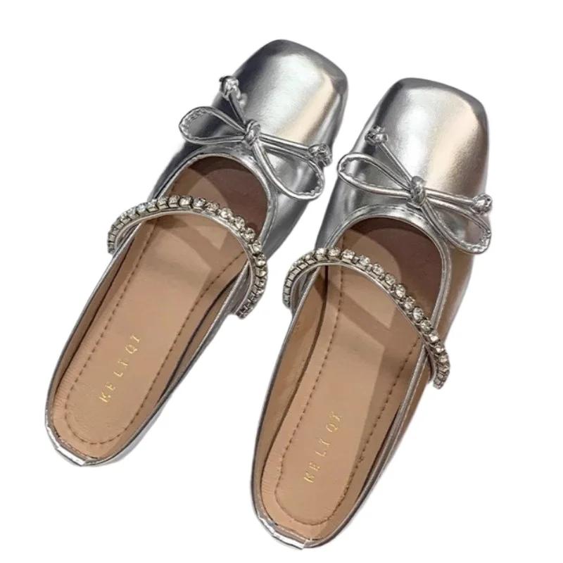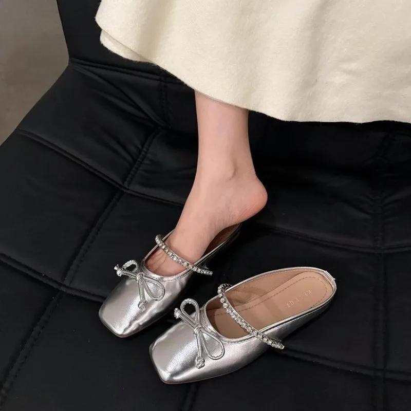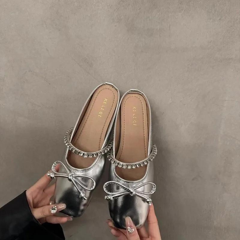 Fashion Ladies Shoes 2025 New Closed Toe Women's Slippers Fashion Butterfly-knot Casual Slippers Women Best Seller Crystal Flat Slippers