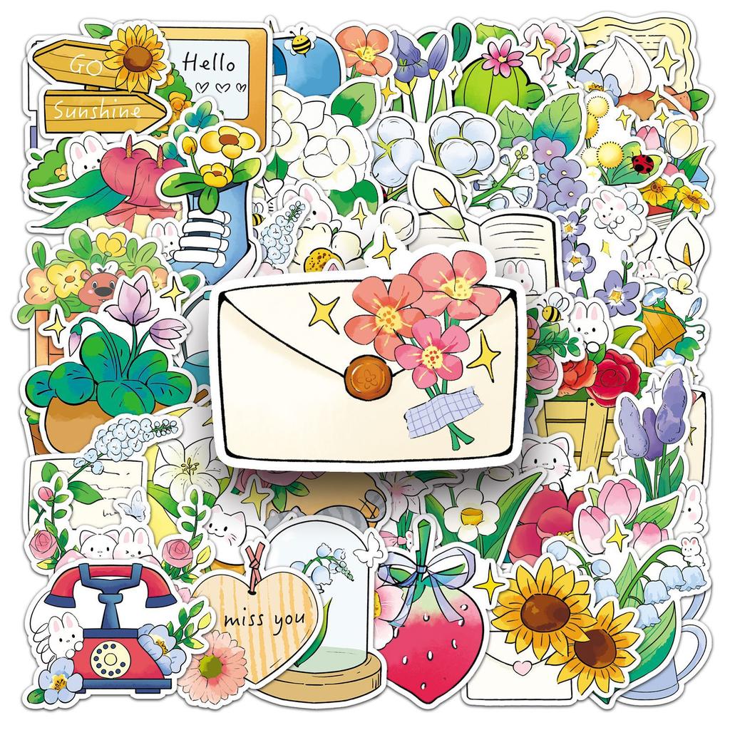 50 Flower Story Graffiti Stickers Cartoon Fresh Hand-drawn Flowers Decoration Mobile Notebook Stickers