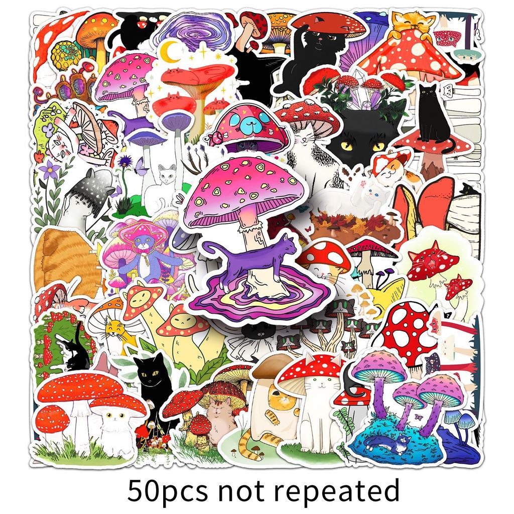 50 Cat Mushroom Graffiti Stickers Personalized Cartoon Animals and Plants Decorative Mobile Phone Case Water Cup Creative Stickers