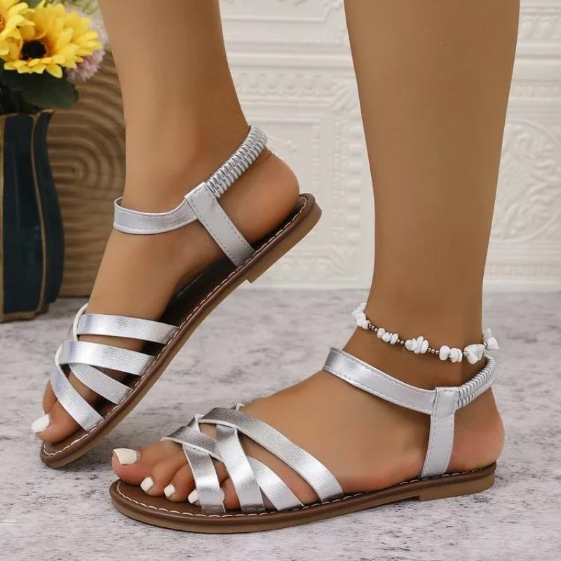 Модные женские сандалии на плоской подошве с нескользящей резиновой подошвой, женская повседневная обувь, легкие летние женские сандалии, сандалии с ремешком в римском стиле