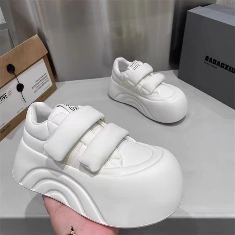 Кроссовки на липучках осенние толстоподошвенные туфли на платформе с большой головой милые туфли на платформе маленькие белые туфли с круглым носком увеличивающие рост туфли-хлебушки