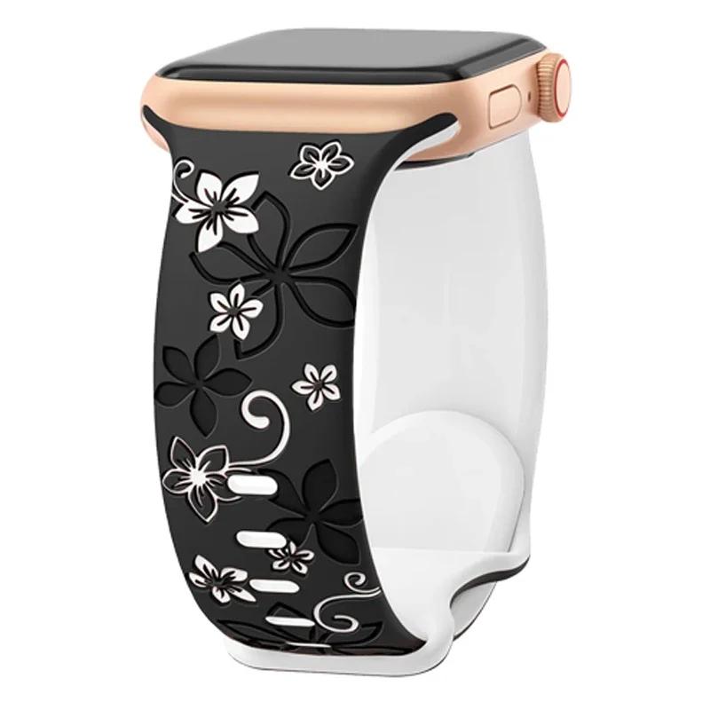 Гравированный ремешок для Apple Watch Band 40 мм 44 мм 41 мм 49 мм 45 мм 38 мм 42 мм силиконовый браслет для Iwatch Series 9 7 Se 6 5 4 8 Ultra