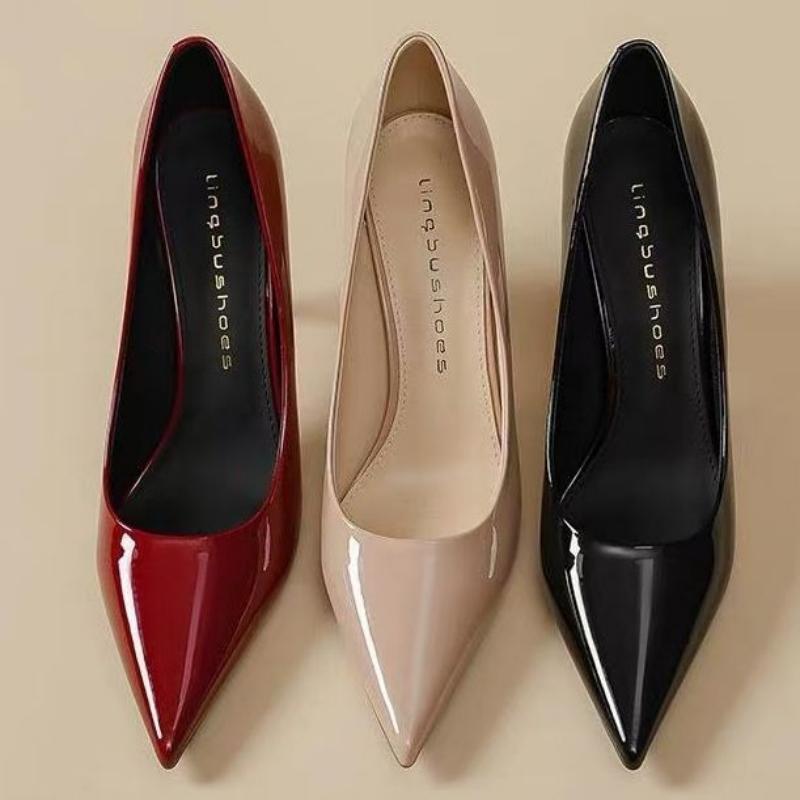 Модные Новые Женские Туфли Лодочки с Острым Носком из Лакированной Кожи Платье Красные 8 см Высокий Каблук Туфли-Лодочки Тень Свадебные Туфли для Свадьбы Женские