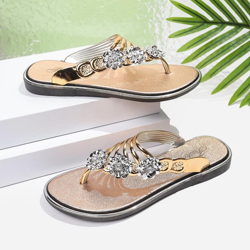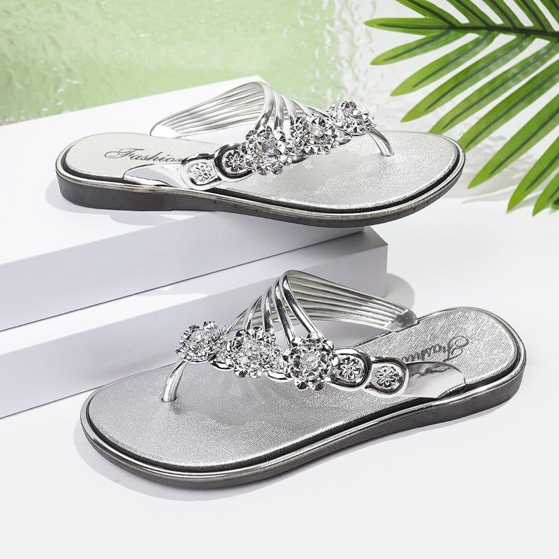 Модные сандалии с плоским носком, летние новые, с круглым носком, с хрустальной пряжкой, на тонкой подошве, мягкие, противоскользящие, износостойкие шлепанцы