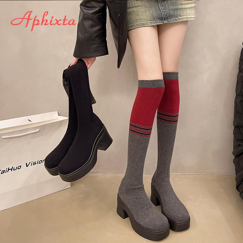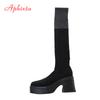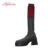 Модные женские ботфорты Aphixta из мягкой ткани, женские черные туфли, модные ботинки с круглым носком, современные ботинки для женщин, размер 42