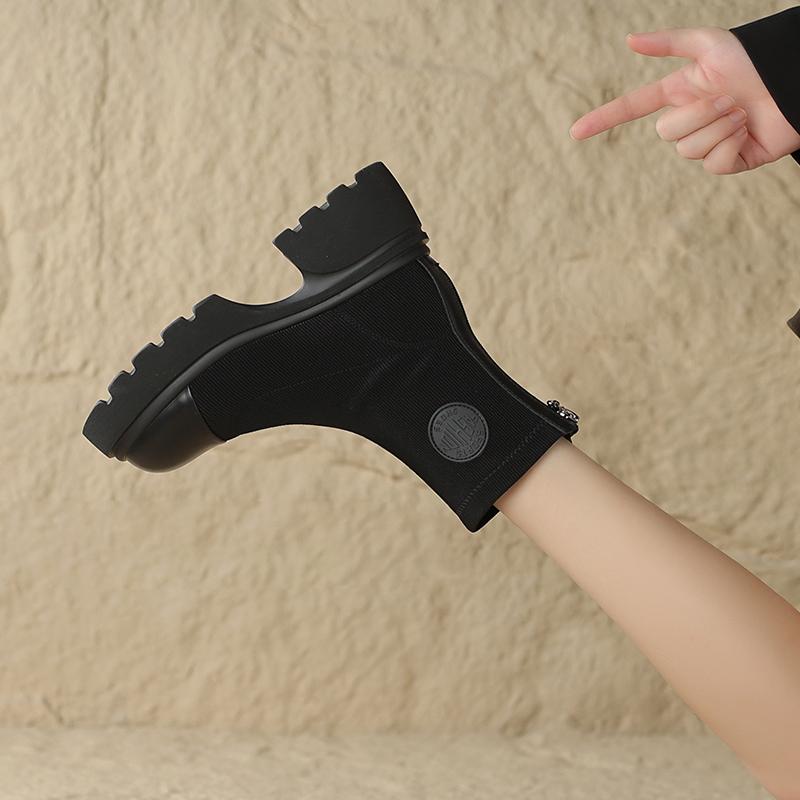 Модные Aphixta Классические Элегантные Ботильоны с Круглым Носком Женские Зимние Ботинки Задняя Молния Квадратный Каблук Женские Ботинки Черные Ботильоны-носки на Платформе